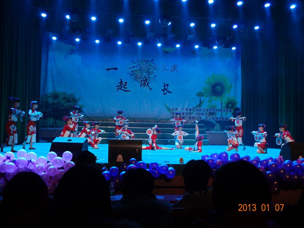 1月7日,音乐系508音乐毕业汇报演出在高州师范学院南区礼堂隆重举行。晚上7:30,由508全体同学参与的舞蹈《寻》拉开了晚会的序幕。高州师范学院伍世亮院长在晚会致辞中充分肯定了508音乐在五年的高师生活所取得的成绩及为母校所作的贡献。