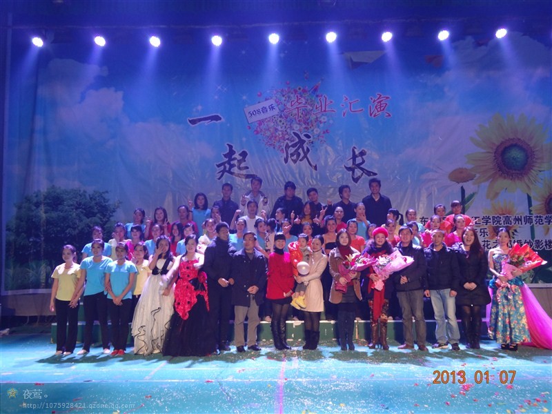 508音乐在高州师范5年的求学中,学有所成,即将走上人生的另一个高度,他们在高师一起成长,永远都是一家人。晚会在一曲《怒放的生命》全体同学真情的演绎降下帷幕,这次演出感人至深,深深地打动了在座每一位观众的心。相信508音乐班一定能发扬高州师范学院 “学高为师,身正为范”的校训精神。祝愿他们在社会上早日实现自己。