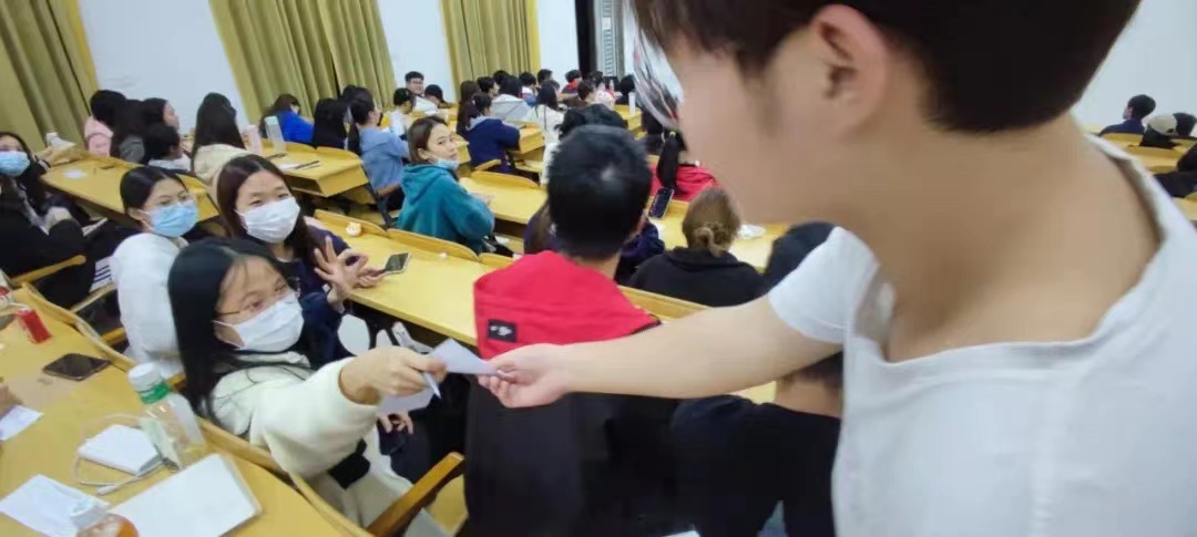 各班班长正在分发志愿填报表